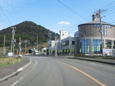 | 下り勾配を走っていると茅沼川の手前で北海道r342交差点を通過する。茅沼橋を渡ってやや急な勾配を上っているとr342交差点を通過する。茅沼川の南の交差点にはソトバが設置されているが、ウォッちずでは県道扱いされていない。北の交差点はその逆である。2ヶ所のr342交差点の後は緩やかな上り勾配を走って泊村役場の前を通過する。町役場の近くに家屋は少ないが、海寄りの村道沿いには多くの家屋がある。 | ||