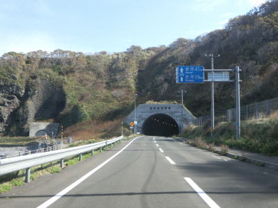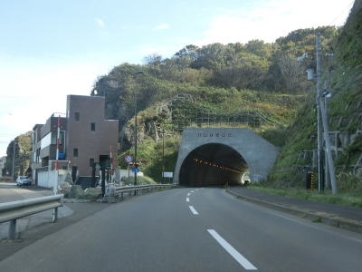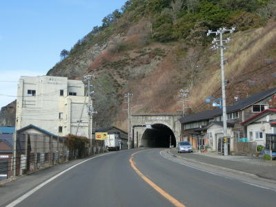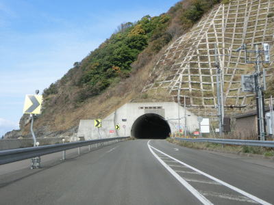 | 高台の2車線道路を走っていると集落を通り抜けて兜トンネルをくぐる。旧道に入る事はできるが、旧トンネルが閉塞されておりその手前までしか行けない。その手前に公衆トイレのある簡易駐車場がある。兜トンネルを出てからも海沿いの集落を走り抜ける。 | ||
