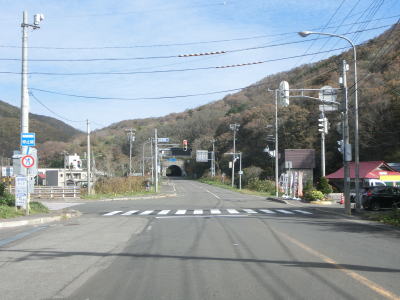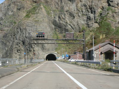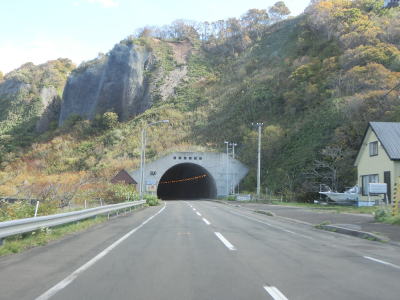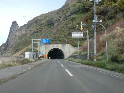 | 2車線道路快走していると緩やかな上り勾配の左カーブを曲がる途中で泊村に入る。そのまま緩やかな勾配を上っているとほりかっぷトンネルに入る。このトンネルの海寄りに北海道電力の泊原子力発電があり、その敷地の一部はトンネルの上にもある。 | ||