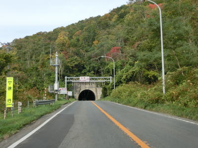 | クリヤ隧道から少し走るチャス隧道をくぐるが、このトンネルにも3.9mの制限高が設定されている。緩やかな左カーブを曲がっていると町境を通過して豊浦町に入り、右カーブの先で北海道r97東雲町交差点を通過する。案内標識が縦に長いが、以前はr97にいくつかの地名等が表記されていたが消されてしまったようである。 | ||