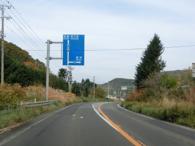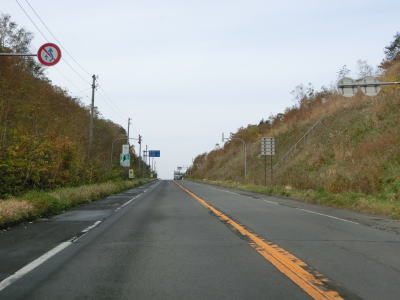 | 136.北海道r344・r609交差点 | 137.二桁国道の割に交通量は少ない | 138.峠川付近のカーブ部分には中央分離帯 |