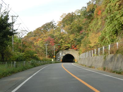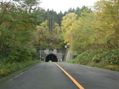 | 峠川の左岸の山の斜面を走っていると美乃覆道と岩谷覆道を相次いで通過する。沿線に建物はないが峠川の傍には豊浦町森林公園というキャンプ場がある。覆道を過ぎても緩やかな上り勾配が続いており交通量が少ないせいもあって非常に走りやすい。 | ||