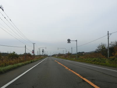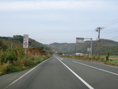 | 名もなき峠の手前で町境を通過して黒松内町に入る。長万部町域を通っていた距離は約1.3kmと短い。峠部分を越えてからは緩やかな勾配を下って行く。緩やかな右カーブを曲がって海岸線から離れていくが、直線的な走りやすい道路状況という点に変化はない。大成橋駐車帯を過ぎた直後に北海道r266交差点を通過する。右折してr266を走れば黒松町の中心部に行く事ができる。 | ||
