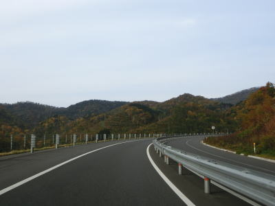 | 高岡第三隧道、高岡第二隧道、高岡第一隧道と3つの短いトンネルを連続で通過するが、その辺りで右にカーブして海岸線から離れる。さらに少し走ると豊泉トンネルをくぐるが、その下にはE5道央道の高岡トンネルが通っている。 | ||