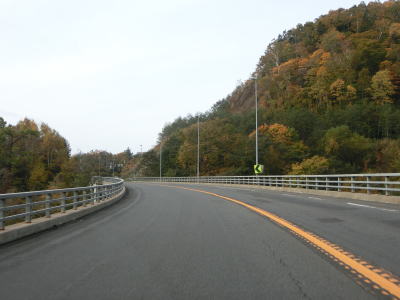 | 北海道r32・r608交差点からは緩やかな上り勾配がメインの2車線道路を走る。大岸トンネルからは下り勾配となるが、それまでの緩やかなカーブから一転して複数の急カーブが存在している。ヘアピンカーブではあるが、曲線半径は大きめでセンターライン付きの2車線道路なので走りにくさはあまり感じない。 | ||
