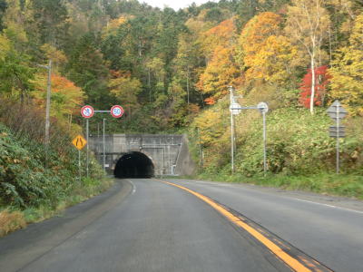 | 北海道r266交差点からは緩やかな上り勾配となる。礼文トンネルと礼文華トンネルに制限高は設定されていなかったが高さ制限区間は継続しているようで標識が設置されている。静狩トンネルの手前に長万部町に境標識が立っているが、これは町境の240m手前に設置されている予告標識のようなものである。静狩トンネルを出た先に境標識が設置されているが、実際の町境は静狩トンネル内にある。なお、豊浦町は胆振総合振興局に、黒松内町は後志総合振興局に、長万部町は渡島総合振興局に属している。 | ||