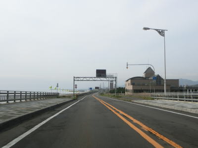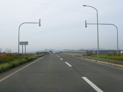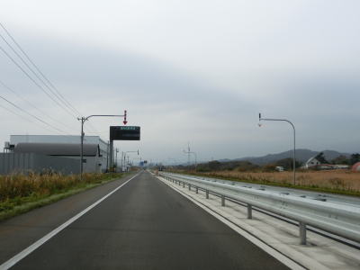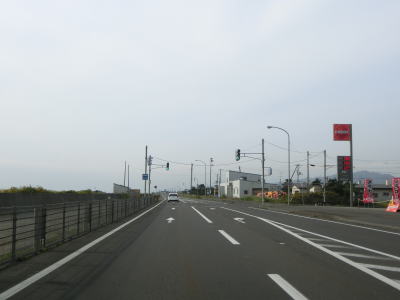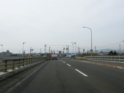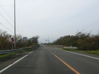 | 排水橋を渡ると緩やかな上り勾配の右カーブを曲がって静狩こ線橋を渡る。前方には内浦湾が見える。海岸線とJR室蘭本線の間を走っており、平坦な直線道路が長く続いており走りやすい。 | ||