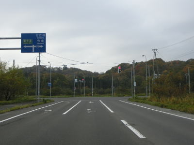 | 北海道r677交差点と北海道r936交差点を相次いで通過するが、信号機もなくセンターラインの切れ目もないため道道との交差点には見え難い。これまで何ヶ所かで交差、重複していたr936の起点がこの交差点である。 | ||