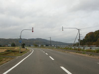 | アップダウンを繰り返す直線的な2車線道路を淡々と走る。目名橋を渡るとせたな町に入るが、その下を流れている利別目名川が町境である。せたな町に入ってからも直線基調の走りやすい2車線道路が続いている。 | ||