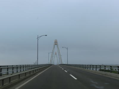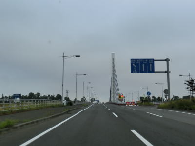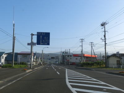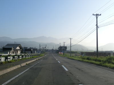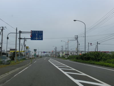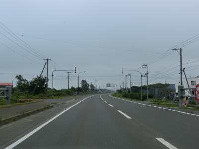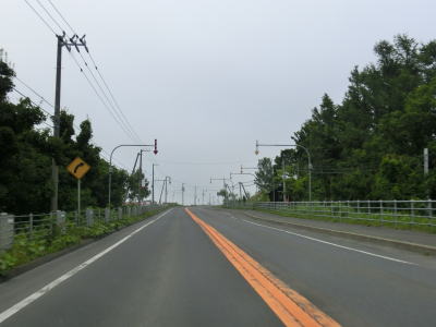 | 北海道r508矢臼場交差点を通過してすぐに石狩川の最下流に架かる石狩河口大橋を渡る。橋を渡って程なくして家屋がある程度集まって建っている中で北海道r81八幡町交差点を通過する。以降は畑や牧草地の間を走り抜ける北海道らしい快走路を淡々と走る。 | ||
