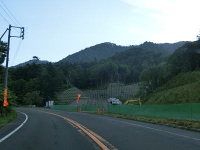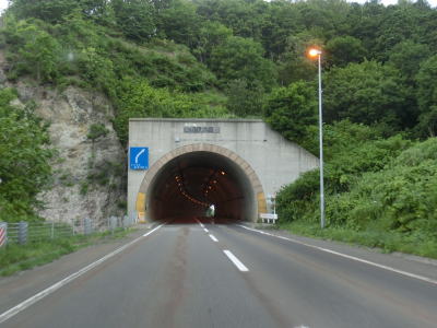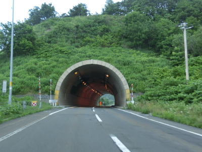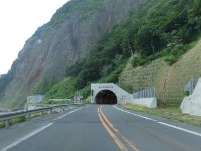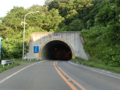 | 送毛川の南側を走っていると潮見橋の前後で左に大きくカーブしているが、前方に工事中のトンネルが見える。2013年度の開通を目指して建設中の新送毛トンネルである。潮見橋からはカーブの多い上り勾配となり送毛トンネルをくぐる。新しいトンネルが建設中とは言え現在の送毛トンネルの全長は1901mと結構長大である。しかし、開通が1977年とやや古く、スノーシェッドから実際の抗口に切り替わる際に幅が狭くなっている。 | ||