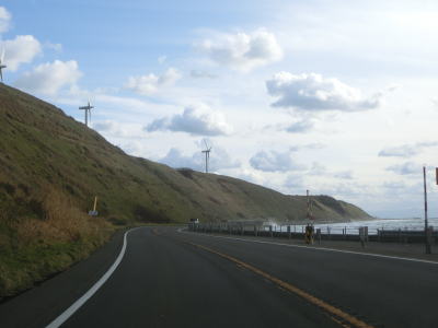| 134.力昼漁港付近を走る | 135.海岸線沿いを快走 | 136.小平町に入る |