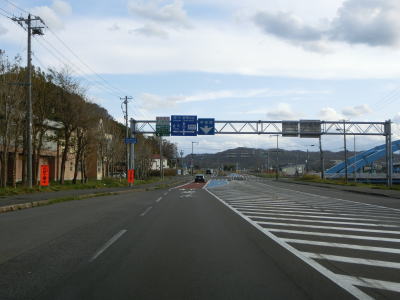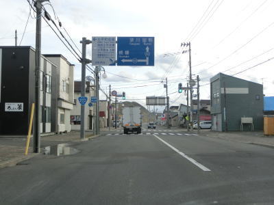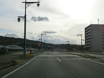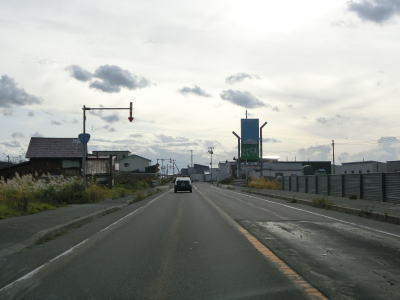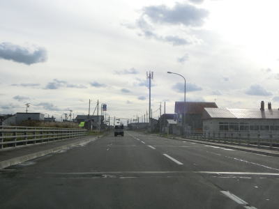 | 留萌港の東を走っていると留萌川の河口付近で左にカーブして川沿いとなり、北海道r1048春日町2・塩見町交差点を通過する。かつては交差点の少し南に国鉄羽幌線が横切っていた。留萌川の向こう側に留萌市の市街地が見える。 | ||