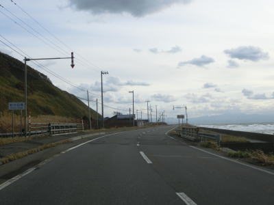 | 多くの小さな川を渡りながら平坦な2車線道路を淡々と走る。日本海側のメインルートとは言え交通量は少ない。日本海オロロンラインと呼ばれる好景観道路のため、休日、特に夏季には交通量が増える傾向にあると思われる。 | ||