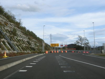 | 152.駐車帯内は一方通行 | 153.規制区間内も快走路 | 154.法面で工事が行われていた |