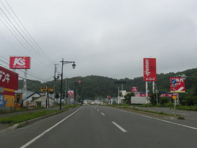 | 1.元川町2交差点 | 2.旭川まで79km | 3.大型量販店は中心部から離れた場所にある |