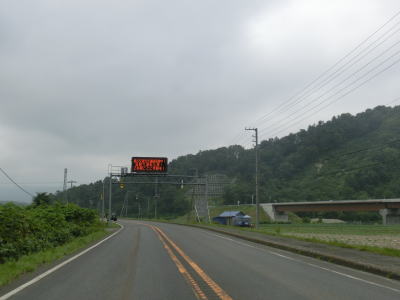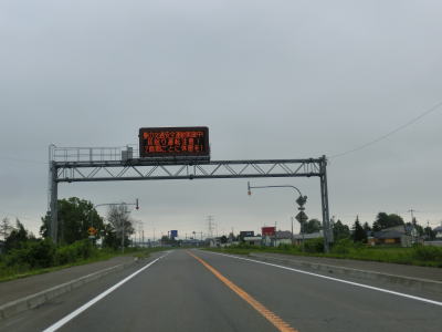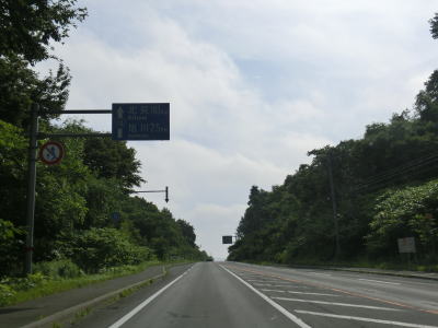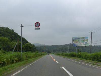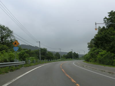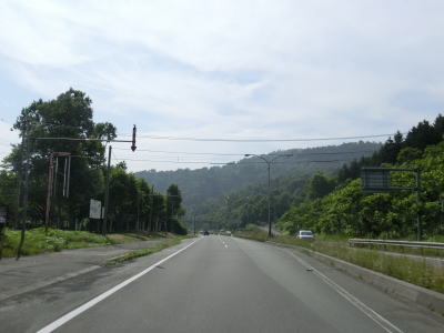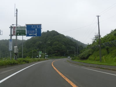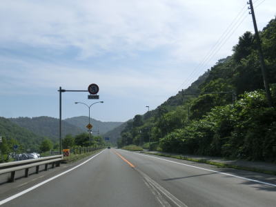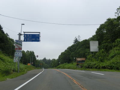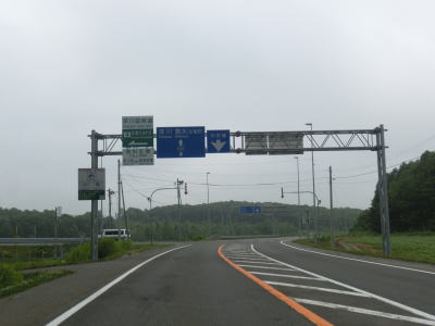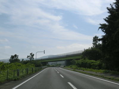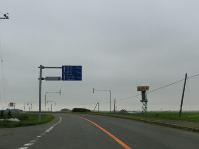 | r549交差点から緩やかな上り勾配の快走路を走っていると深川留萌道の高架下をくぐり、美葉牛峠を越えて北竜町に入る。どう読むのか悩む峠の名称だが、そのまま“びばうし”と読む。美葉牛峠からの下り勾配も緩やかで峠から約900mで北竜ひまわりICを通過する。インターから先は田畑の多い平野部となり勾配はさらに緩やかになる。 | ||