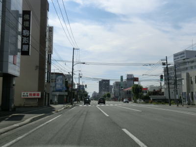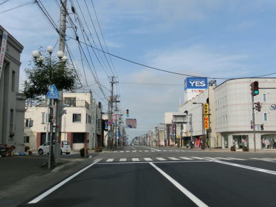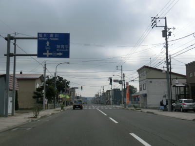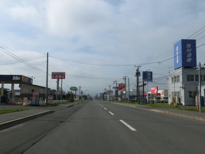 | 曙町交差点から程なくして沿線の建物が増え、そのうちのいくつかは商業施設である。進むにつれて建物はどんどん増えていくが、見通しが悪くなったり道路そのものの線形が悪くなったりという事はない。留萌本線の起点駅でもある深川駅の東で跨線橋で函館本線を越える。 | ||