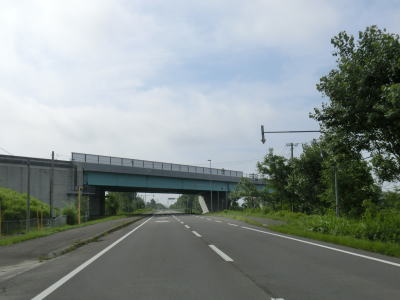 | 町役場から程なくして道の駅「鐘のなるまち・ちっぷべつ」の前を通過する。便宜上“前”と表現したが、厳密には道の駅の敷地は国道に隣接しておらず市道を介して出入りする必要がある。道の駅を通過してすぐに上り勾配となって秩父別跨線橋で少し距離をおいていた留萌本線をオーバーパスする。秩父別跨線橋から降りた所で五差路を道なりに右斜め前方へ進み、これまた少し距離を置いていた深川留萌道の秩父別ICを通過する。 | ||