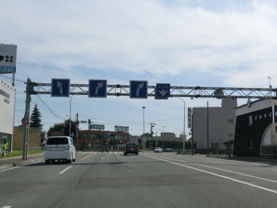 | 4.潮静交差点で右側車線が右折専用車線になる | 5.留萌市大和田 | 6.深川留萌道・留萌大和田IC |