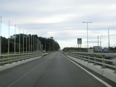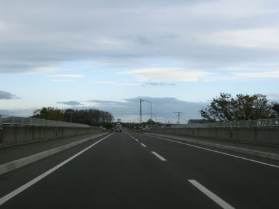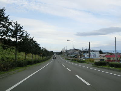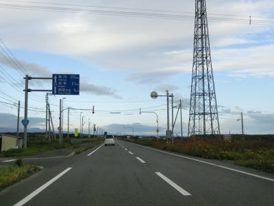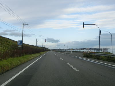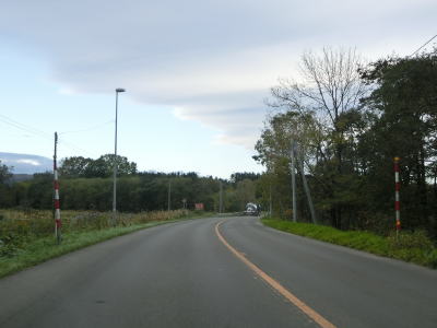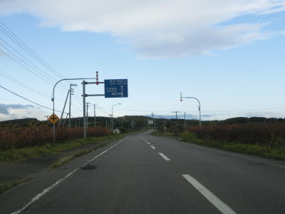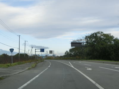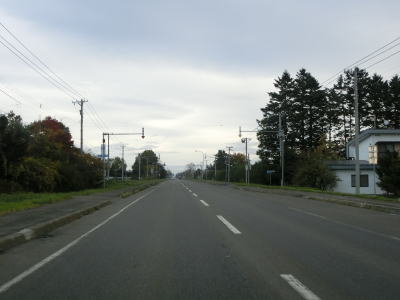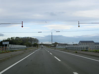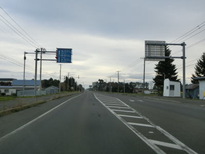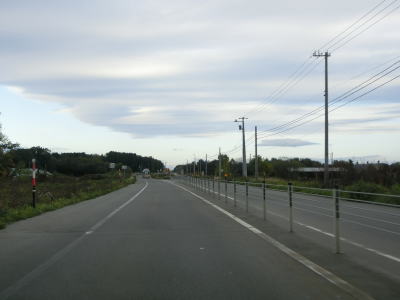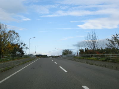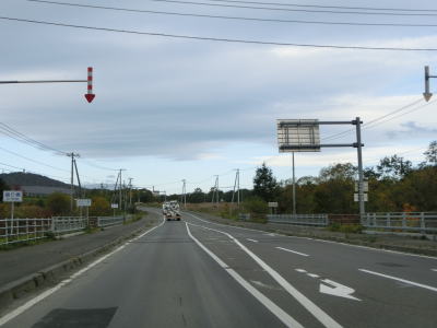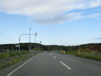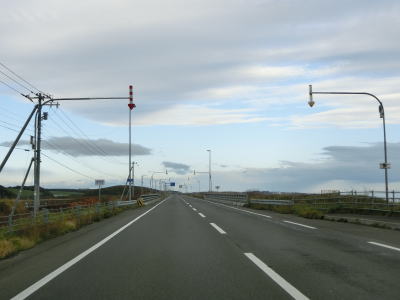 | 湧別大橋を渡ってからもほぼ平坦な直線道路が続いており、交通量が少ない事もあって非常に走りやすいと感じる。川西橋という名称の橋を渡るが、橋は“かわにし”と読むがその下を流れている川は“せんさい”川である。1989年に廃止されたJR名寄本線跡と近接した状態で並走していた区間になる。ラバーポールによる中央分離帯が現れた直後に沼端橋を渡った後は高速道路の暫定2車線区間に設置されているようなワイヤー型の中央分離帯になる。 | ||