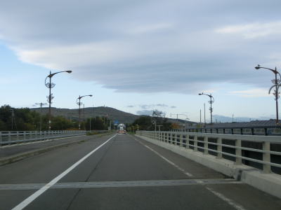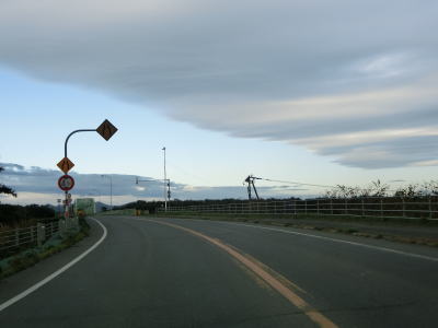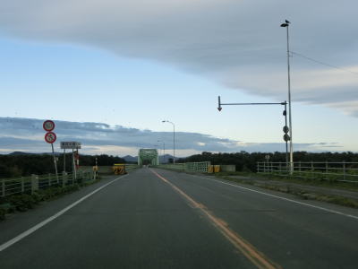 | 北海道r204交差点から少し走ると右カーブを曲がり、その後左にカーブしながら緩やかな勾配を上る。幅員減少と4.1mの制限高を示す標識が設置されているが、それらの要因は湧別川に架けられた湧別大橋である。 | ||