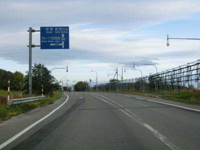 | 植栽のある中央分離帯が現れて片側1車線道路になってから北海道r873交差点を通過する。r873は約70m先でr305との交差点があるためか、案内標識のヘキサはr305となっている。r873交差点から少し走ると上下線が分離している藻別橋を渡り、その後北海道r305交差点と北海道r304交差点を相次いで通過する。どちらも紋別市の市街地に向かう道道である。かつてはJR名寄本線がr305交差点付近で交差していたが、その痕跡を探すのは難しい。 | ||