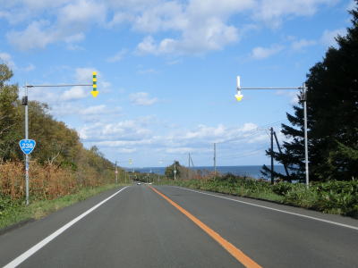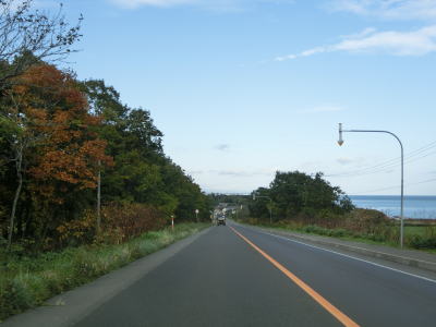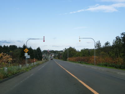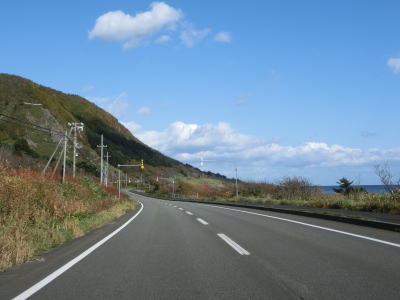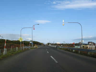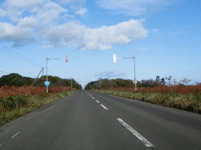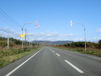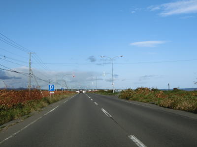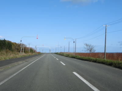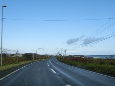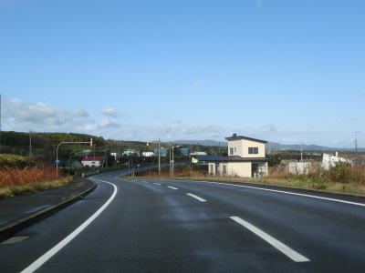 | オホーツク海沿いを走っていると町境を通過して枝幸町に入る。枝幸町に入ってからも緩やかなアップダウンを繰り返す2車線道路が続いており、非常に走りやすい道路状況である。音標集落を通過するが、興浜線が開業していれば駅が置かれていたであろう。 | ||