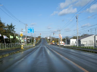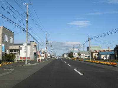 | 雄武町の役場の前を通過した直後に北海道410交差点を通過するが、その北西に道の駅「おうむ」がある。国鉄興浜南線の雄武駅跡の近くに造られた道の駅である。雄武駅は興浜南線の終着駅でありこれより北に線路はなかったが、興浜北線の北見枝幸駅まで繋げる計画があった。興浜北線は1985年7月1日に、興浜南線は同年7月15日に廃止されて雄武駅〜北見枝幸駅間は未成線となっている。未成線区間の一部は路盤が造られており、航空写真でも確認できる。 道の駅からも雄武町の中心部と言える場所を通っているため沿線の家屋は多いが、道路状況が良いため走りにくさは感じない。沿線の家屋が少なくなるとアップダウンを繰り返すようになるが、快走路である点に変わりない。 |