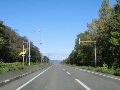 | 徳志別集落を過ぎても海沿いの快走路が続いており、岡島集落の北で道の駅「マリーンアイランド岡島」を通過する。建物は船を模した特徴的な形状である。枝幸町に入ってから鹿の飛び出しに注意を促す標識などが設置されているが、通常の警戒標識だけでなく鹿の形状をしたものまである。歩いているように見えるものや走っているように見えるものなど複数のポーズが確認できる。 | ||