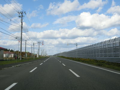 | 182.北オホーツクトンネル | 183.浜頓別町に入る | 184.防雪柵があるため海が見えない |