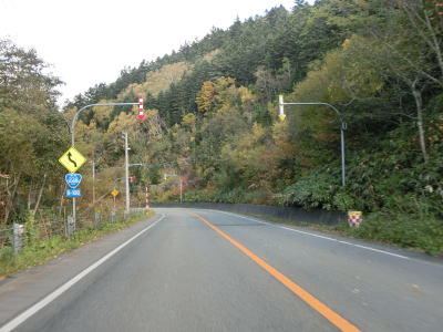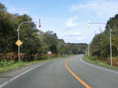 | 北海道r1077交差点を過ぎてからもオホーツク海沿いの2車線快走路を走る。国道に沿った細長い東浦集落を走り、東浦漁港付近で左にカーブして緩やかな勾配を上る。ここからは海岸線を離れて内陸を走っており、4kmに渡って急カーブが多い区間に突入する。 | ||