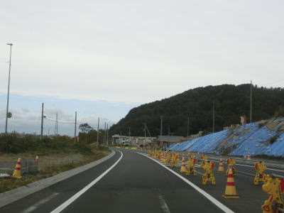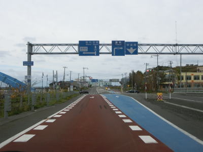 | 37.グリーンヒルウインドパークの風車群 | 38.工事用車両があるため車線幅が少し狭くなっている | 39.おにぎりはR232のみ |
