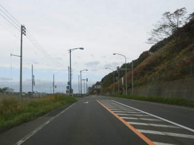 | 堀川町2・東雲町1交差点を過ぎてすぐに東雲跨線橋でJR留萌本線の上を通過して左の直角カーブを曲がる。以前は少し西側に跨線橋がかかっておりカーブももう少し緩やかだったが、E62深川留萌道の(仮称)留萌ICが接続するのにあたって改良されている。なお、留萌大和田IC〜留萌ICの供用は2019年度内の予定である。 直角カーブからは留萌本線に沿って少し走った後に留萌川の右岸を走る。川に沿っているとは言え少し高い位置を通っているため川沿い感はない。また、市街地に近い場所だが沿線に建物はほとんどない。 |