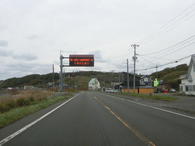 | 10.「高さ制限3.8m幅員制限3.5m 片側交互通行」 | 11.日本海沿いを走る | 12.平坦で見通しの良い2車線道路 |
