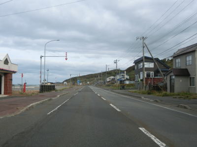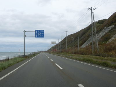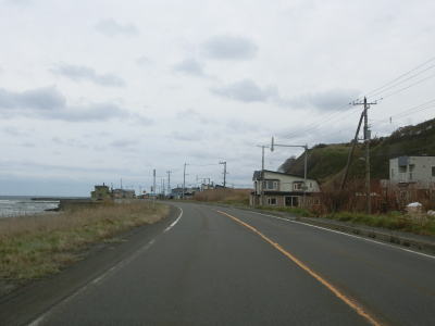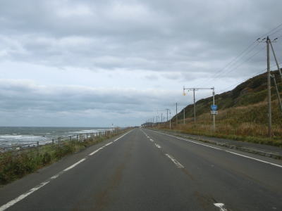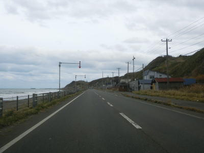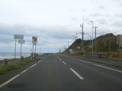 | 北海道r853港町三区交差点を過ぎてすぐにおにしかツインビーチの前を過ぎた後に集落が途切れる。以降は河口付近にある小さな集落を繋ぎながら日本海沿いを北上する。交通量は少なくそれなりのハイペースになってしまう。 | ||