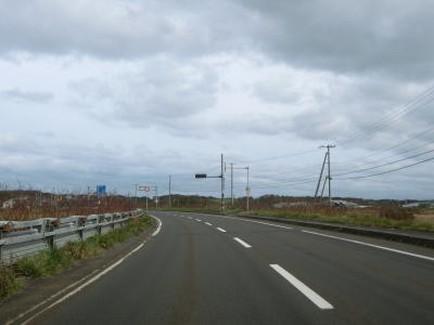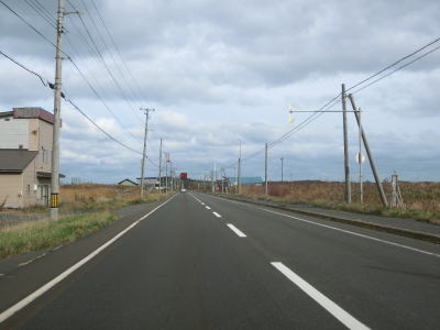 | 留萌港の北東を北に向かって走る。市街地から離れて行くせいもあって交通量は少なくなっていく。沿線の集落が途切れる区間においても平坦でカーブの少ない走りやすい2車線道路が続いている。 | ||