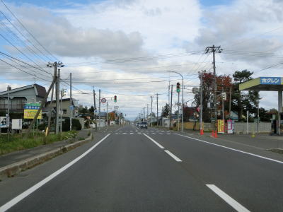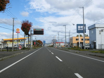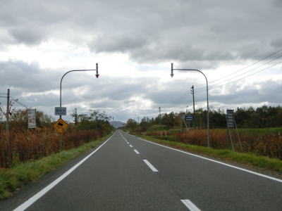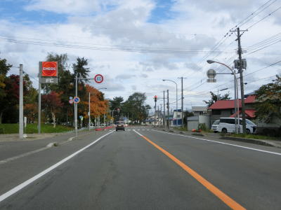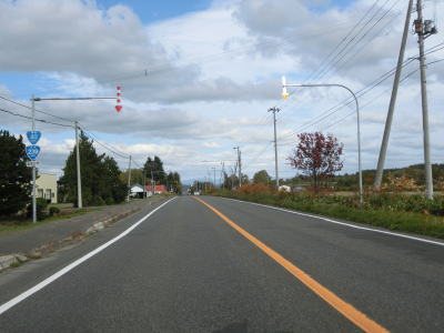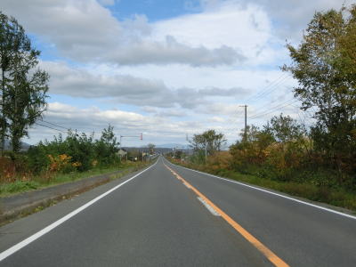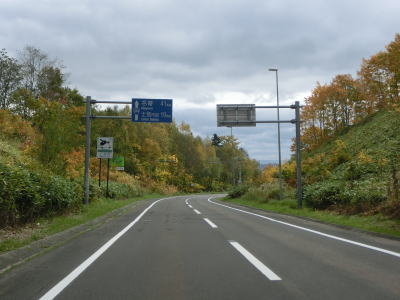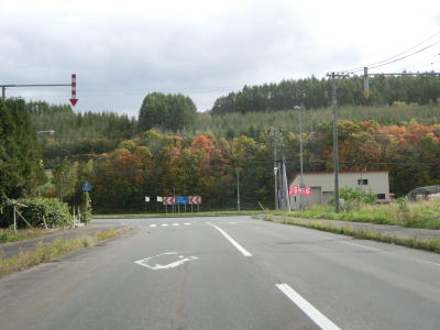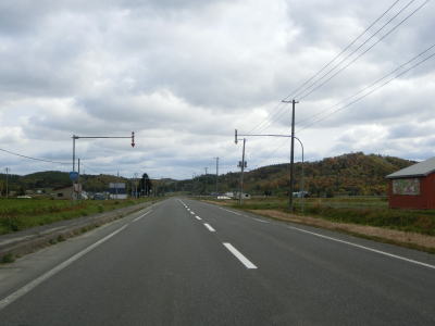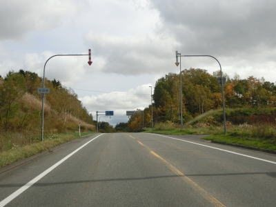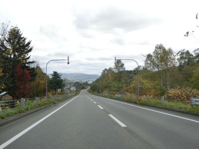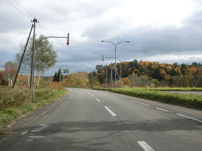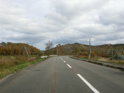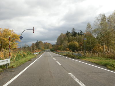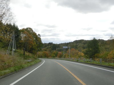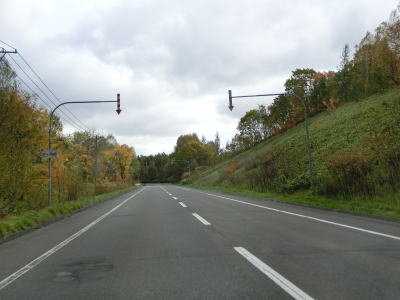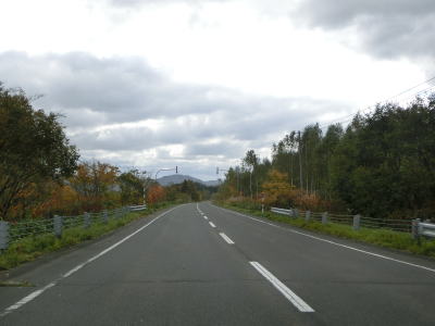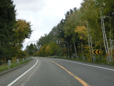 | R275北星交差点を過ぎてからも2車線の走りやすい道路が続いている。勾配は非常に緩やかで峠に向かっているとは思えない程である。標高は250m程度だが、緯度が44度を越えているためか、10月の中旬であっても紅葉が始まっていた。 | ||