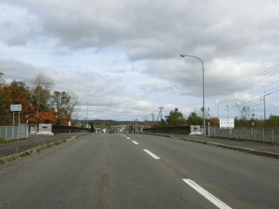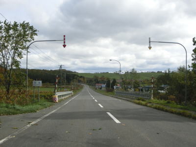 | S字カーブの先で中線橋を渡り、北海道r251との交差点を左に直角にカーブする。案内標識にはr251のヘキサどころか矢印が消されているが、道道の指定を廃されている訳ではないようである。r251交差点からは温根別町集落を通り抜けるが、車線幅が広く北海道らしい道路状況である。 | ||