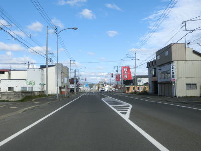 | 148.R40の支線との交差点 | 149.ヒバ(?)の並木 | 150.名寄市の市街地も高層の建物は見られない |