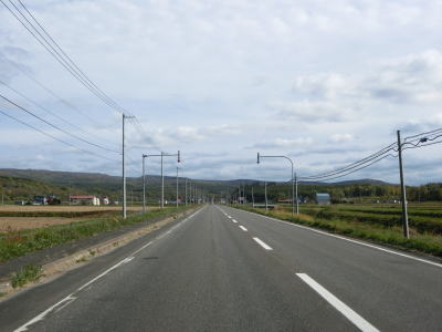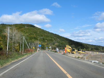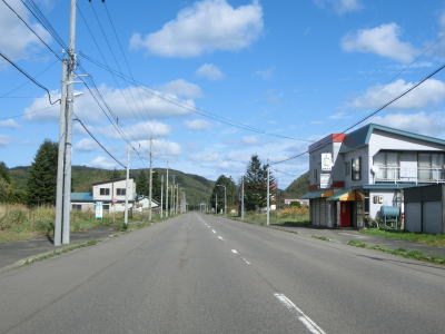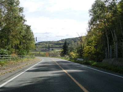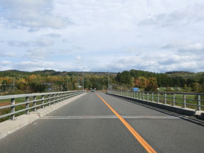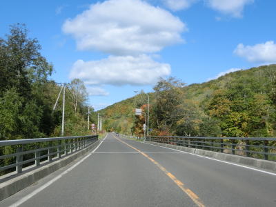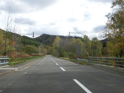 | 興部川の左岸を少し走った後に右にカーブしている一興橋を渡り、アップダウンしながらカーブの少ない2車線道路を快走する。北興駅跡付近で町道(?)の宮下北興間道路との交差点を通過する。 | ||