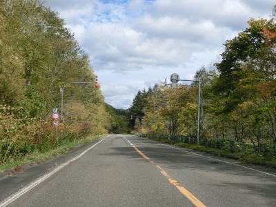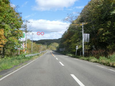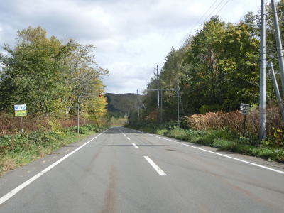| 晩秋ともなれば夜間早朝の凍結が懸念される天北峠だが、標高は300mと高くなく峠に至るまでの道路も緩やかな勾配でほとんどカーブのない状況である。R40から分岐して以降は交通量も非常に少ない。 天北峠を越えると西興部村に入る。この境は振興局の境でもあり、上川総合振興局からオホーツク総合振興局に入る。JR名寄本線跡も峠を越えており、R239のすぐ西にあったが痕跡はほとんど確認できない。なお、この天北峠はR239のほぼ中間地点に当たる。 |