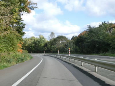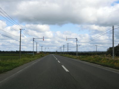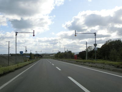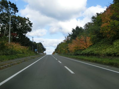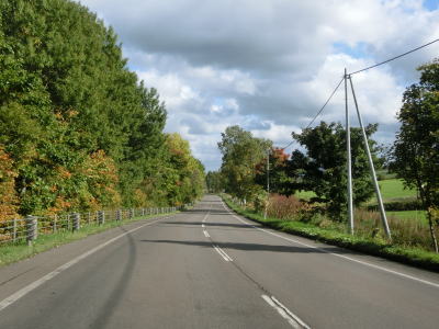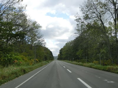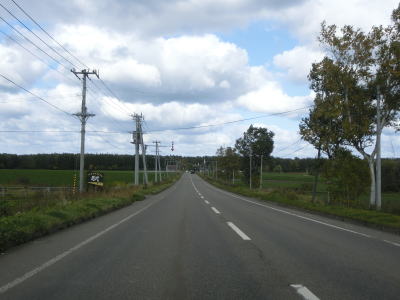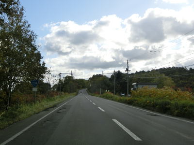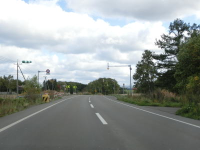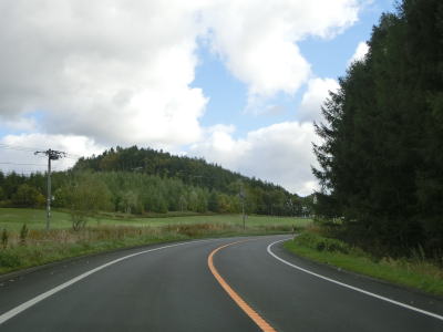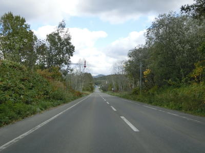 | 北海道r442交差点から少し走ると右カーブを曲がってほぼ真東の方角に向かって走る。その後はアップダウンを繰り返しながらいくつかの緩やかなカーブを曲がる。交通量は少なく快走路と言える道路状況である。 | ||