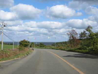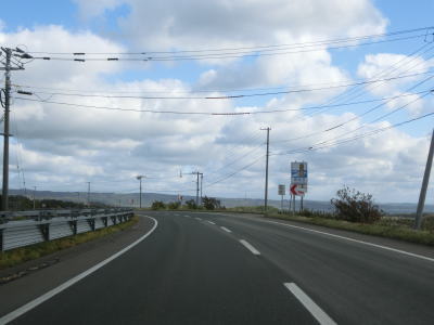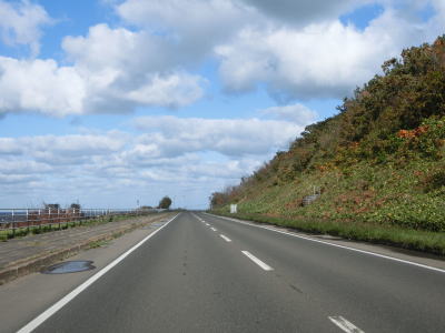 | 北海道r7交差点を過ぎてすぐに左にカーブして緩やかな勾配を上って常呂大橋を渡る。橋を渡り終えると沿線の建物は少なく緩やかな上り勾配の2車線道路を走る。左側の視界が開けるようになるとオホーツク海が見えるようになる。 | ||