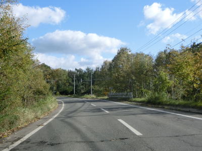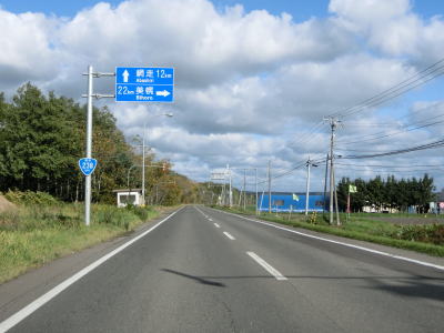 | 緩やかなカーブが連続している勾配を上っていると佐呂間町に入る。佐呂間町に入ってからは緩やかな勾配を下る。直線道路を下っていると国鉄湧網線跡を横切るが、廃止後30年以上が経過しているとあってその痕跡はほとんど確認できない。 | ||