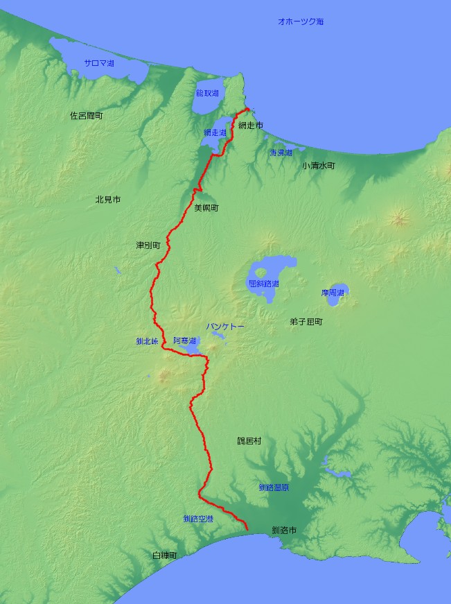 | 主な経由地 | 北海道釧路市〜津別町〜美幌町〜網走市 |