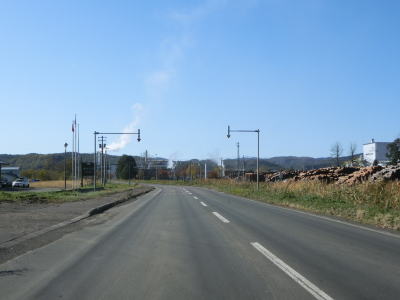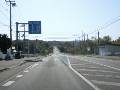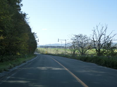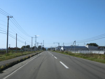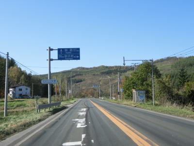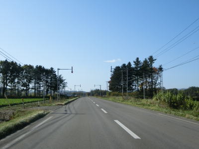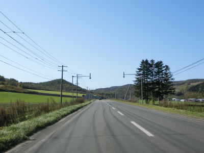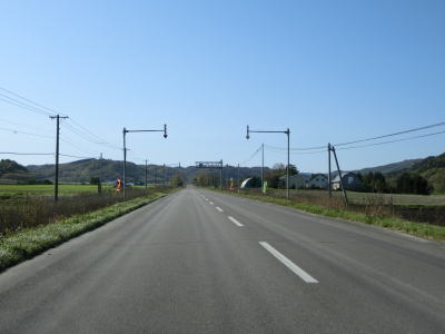 | じゃがいも畑と思われる耕作地の中を走っていると緩やかな勾配を下る。その後は平坦な状態となり、見通しの良い直線道路を快走する。平日の朝という条件のせいもあるが、交通量は非常に少ない。直線道路を走っていると津別町に入る。町境は峠でも河川でもない場所である。 | ||