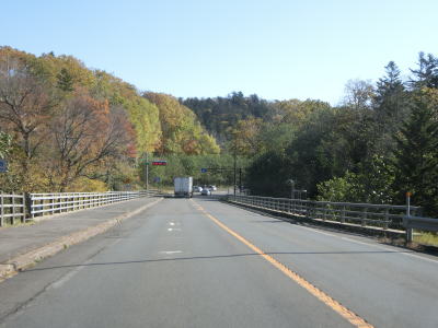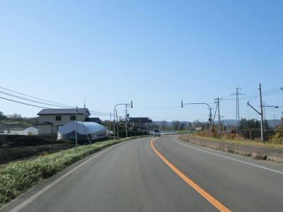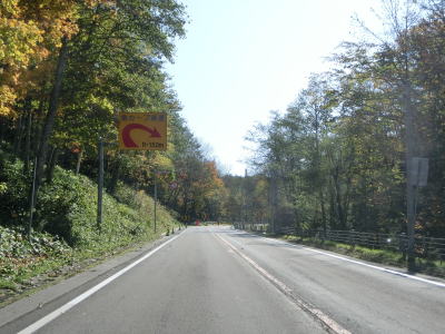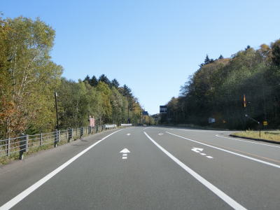 | 緩やかなアップダウンを繰り返しながら直線基調の2車線道路を走る。6%とやや急な勾配の区間もあり、反対側車線には登坂車線が設置されているが、道路状況が良いせいか急勾配には思えなかった。 | ||