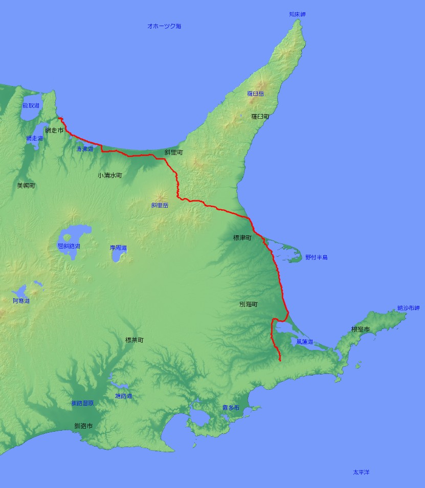 | 主な経由地 | 北海道網走市〜小清水町〜斜里町〜標津町〜別海町〜根室市 |