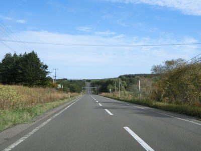 | 別海町に入ってからも道路状況及び周辺の風景には特に変化は見られない。アップダウンを繰り返す2車線道路を淡々と走る。もはや早朝と言える時間帯ではなかったが、交通量は非常に少ない。 | ||